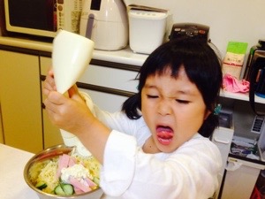 娘は 里村明衣子選手が大好きだ 「いっぱいおうえんするよ! 里村選手、いっぱいおうえんする!」 娘は 橋本千紘選手も大好きだ 「ギュン!ギュン!ギュン!」 と言いながら マカロニサラダを作っている そんな娘に質問 「仙台サンプラザの試合 里村選手と... -