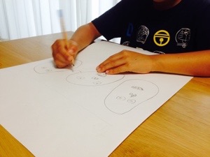 娘は色塗り 息子は 夏祭りのポスター作り 別の意味で 完成が楽しみだ -