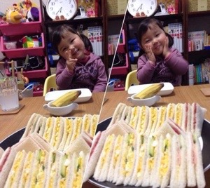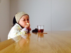 嫁さまと息子はスイミングスクールへ 娘はふてくされ ゴリラのように リンゴをむさぼる