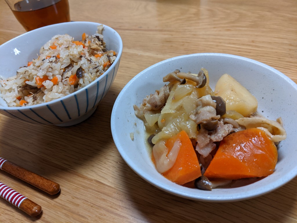 子供喜ぶサバ飯と肉じゃがですが
