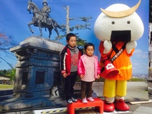 あんたらはおむすび丸と写真撮って