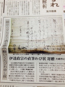 河北新報 伊達政宗の手紙 息子 朝から反応 「おかあさんだね」 息子 政宗とお母さんの共通点を見出す -
