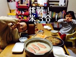 嫁さまは 私たちに挑戦状を突きつけた 「食べられるもんなら食べてみろ!」 土鍋の蓋を開けた ほわほわの湯気の中から 米三合と鮭が現れた 私と息子と娘は 互いの目を見て 静かに頷いた 「食ってやるぜこのやろー!!!」 私の雄叫びが合図となり 私たちは... -